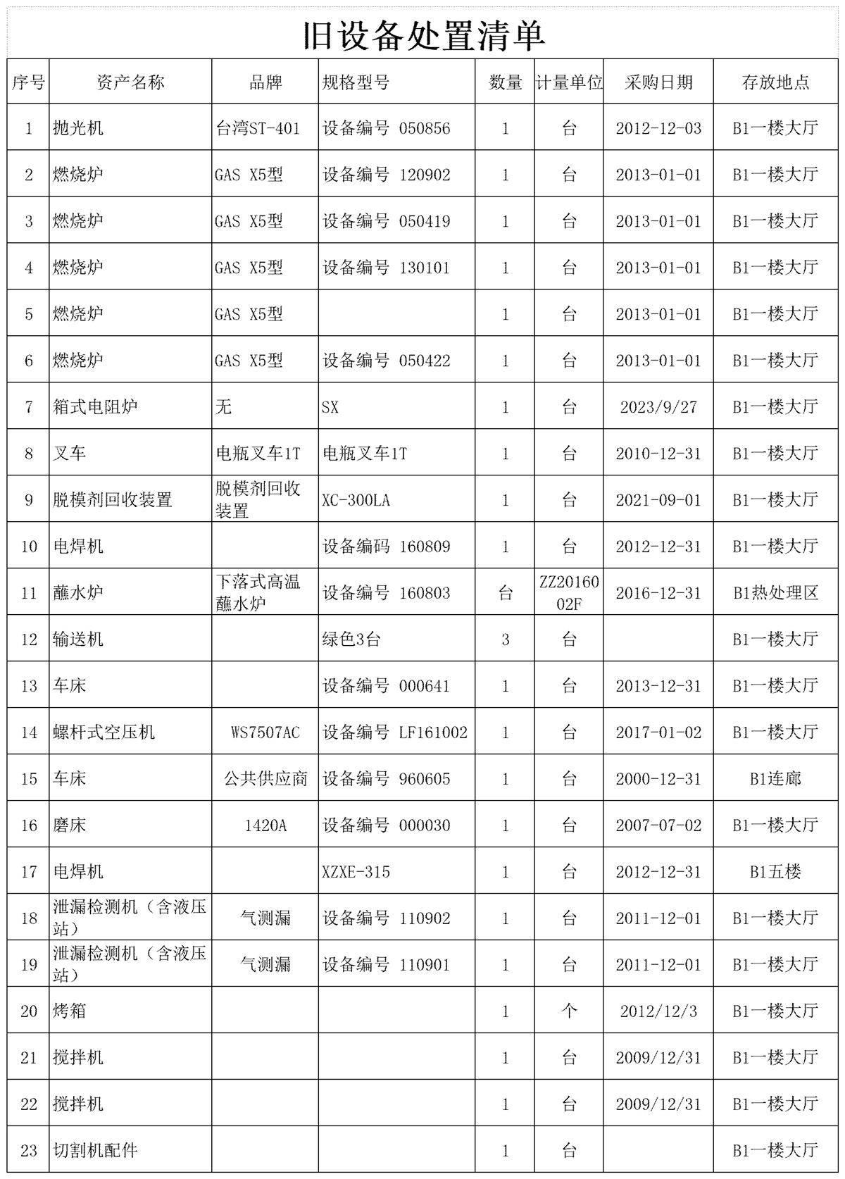 1.旧设备(清单见下表)